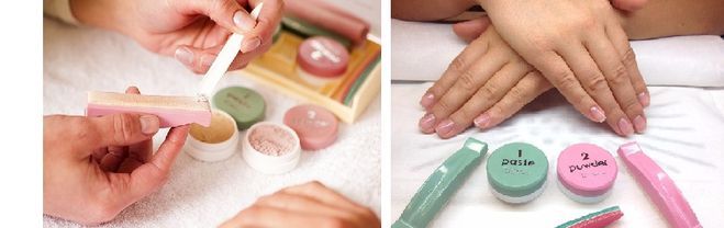 3. Полировка ногтей — используют специальные полировочные блоки, которые содержат натуральные компоненты — пчелиный воск и кремнезём. Полировка выравнивает поверхность ногтей, создаёт блеск и стимулирует кровообращение.